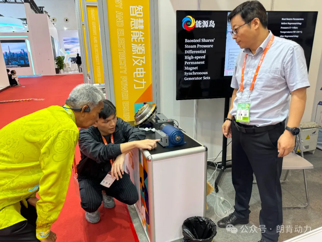 朗肯动力科技本次参展的展品包括零碳高速磁浮ORC发电机组、零碳高速永磁同步蒸汽差压发电机组及冷却塔高效全仿真翼型风叶,这三款产品均已在宝钢股份有限公司成功运用,并取得了显著的节能效果。众多业内专家与采购商在展台前驻足,对产品展现出了浓厚的兴趣。为了更直观地展示产品的性能和优势,公司技术人员结合图文资料、宝钢案例视频以及设备模型展示等手段,为业内人士和采购商做了详细的讲解,不仅介绍了产品的技术原理和特点,还分享了产品在宝钢股份有限公司的实际应用效果和节能数据,让参观者对产品有了更深入的了解。