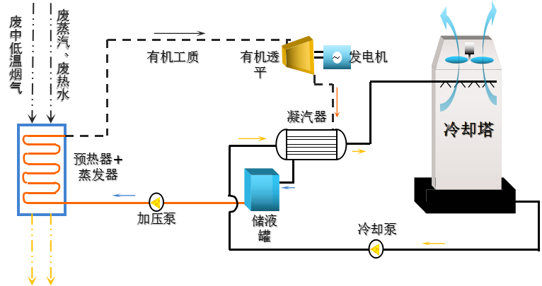 1、有机朗肯循环原理(Organic Rankine Cycle,简称ORC)