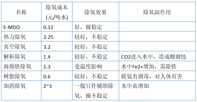 3、膜除氧器与其它除氧方法效益对照表